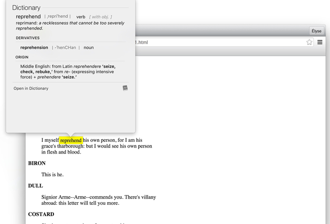 Macs have a handy shortcut that'll let you look up word definitions in a split second. To look up a definition, highlight any word you see, then press command+control+D, and a dialog box with the info will appear.